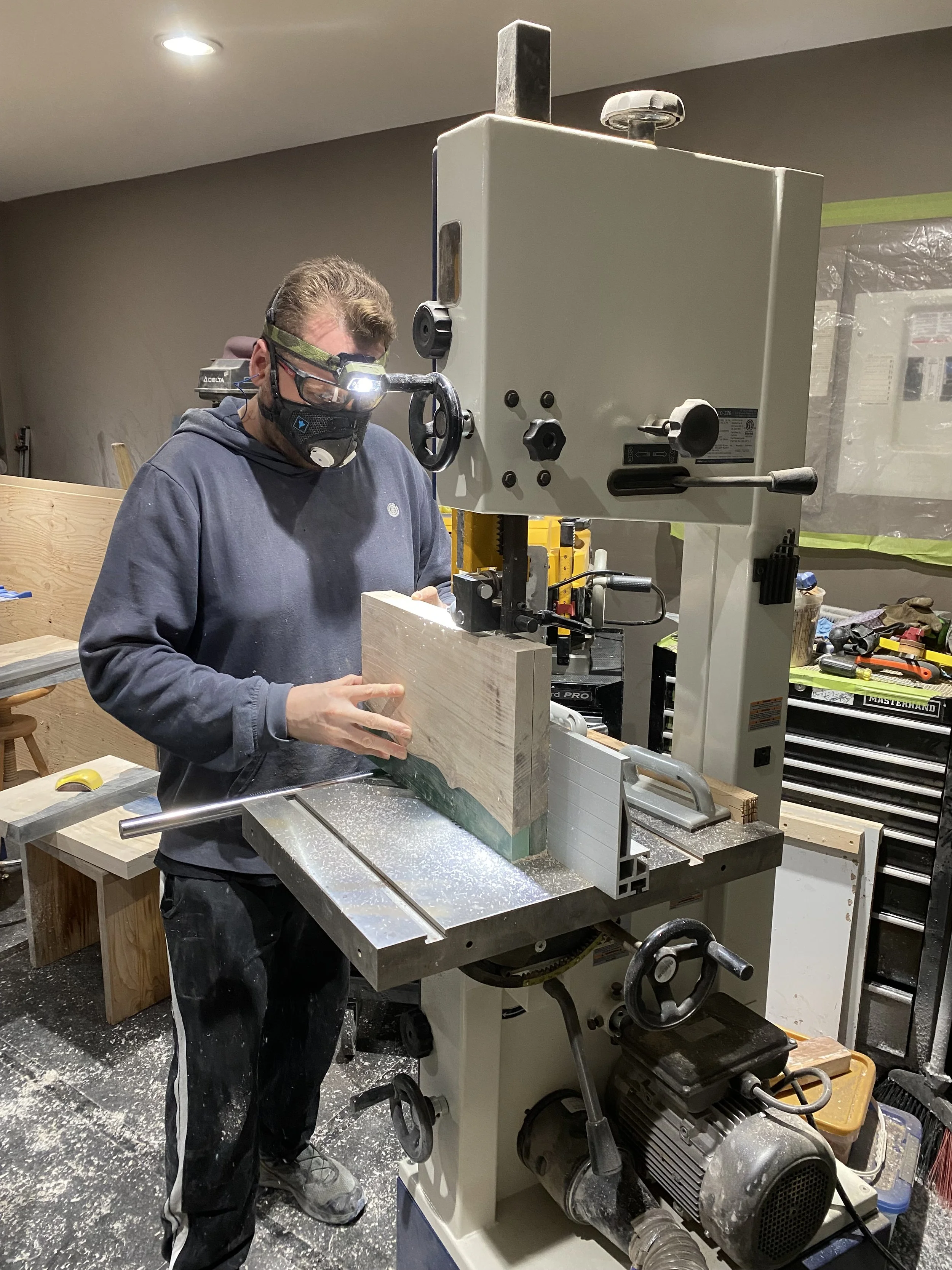Our workshop is a one car garage in North Vancouver. It is a small space but we make it work and are very grateful for this space. A lot of our tools are on wheels and we wheel them around the workshop when they are needed. It’s surprising the number of tools we have been able to fit in there! It is here that all our serving boards, vases, coasters, cutting boards, and other wood product are made.