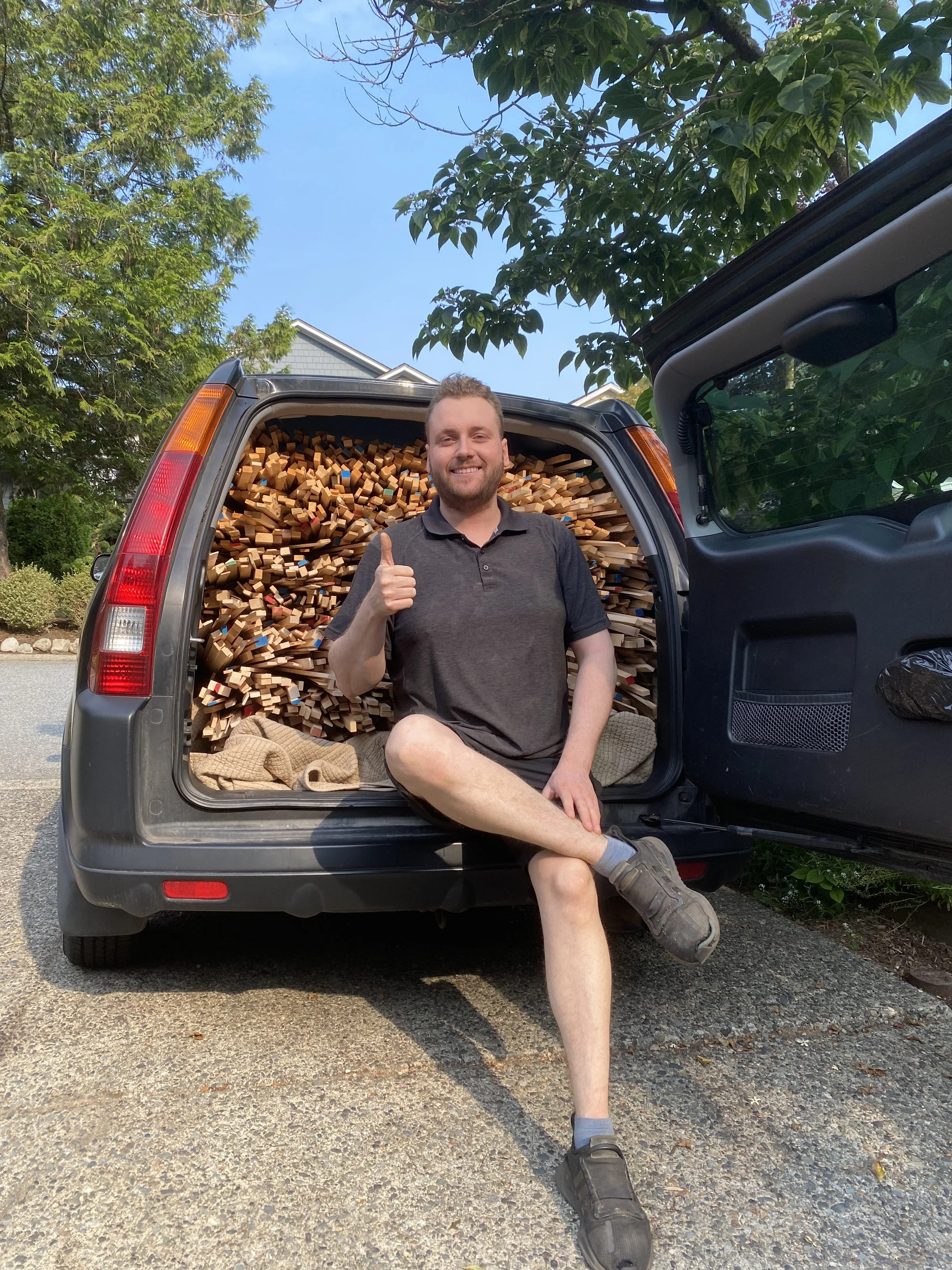 We use all reclaimed wood in our products! Our serving boards are all made using salvaged trees that were removed from around Metro Vancouver. All these trees were coming down for another reason and cut up into slabs and dried. It has been pretty cool to get to see all the different hardwood trees that can grown here! We also use off cuts from other woodworkers in the community and repurpose hardwood from furniture that is at the end of its life.