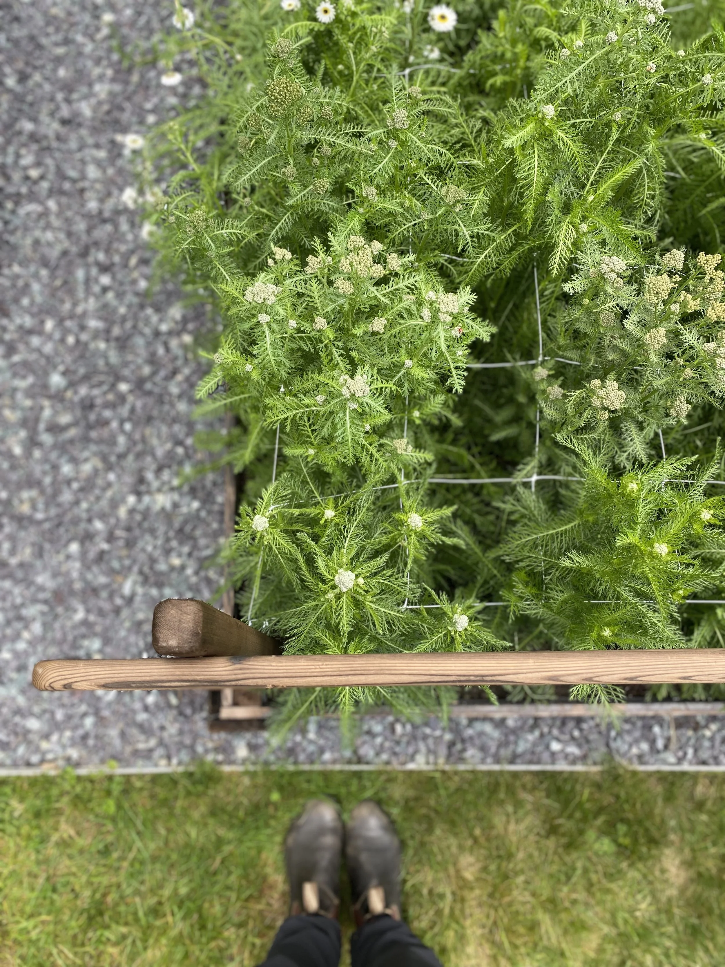 We grow and then dry all the flowers and plants used in our serving boards, vases, and ornaments! They are all grown in our garden in North Vancouver by the two of us. We started with one small garden bed growing a few varieties of drying flowers in 2021 and we made our first ornaments in 2022 after upping our flower growing production. In Spring 2025, we built this garden using entirely reclaimed cedar from old fences and decks from residents in our neighbourhood. This garden has over 500 plants growing in it this year!